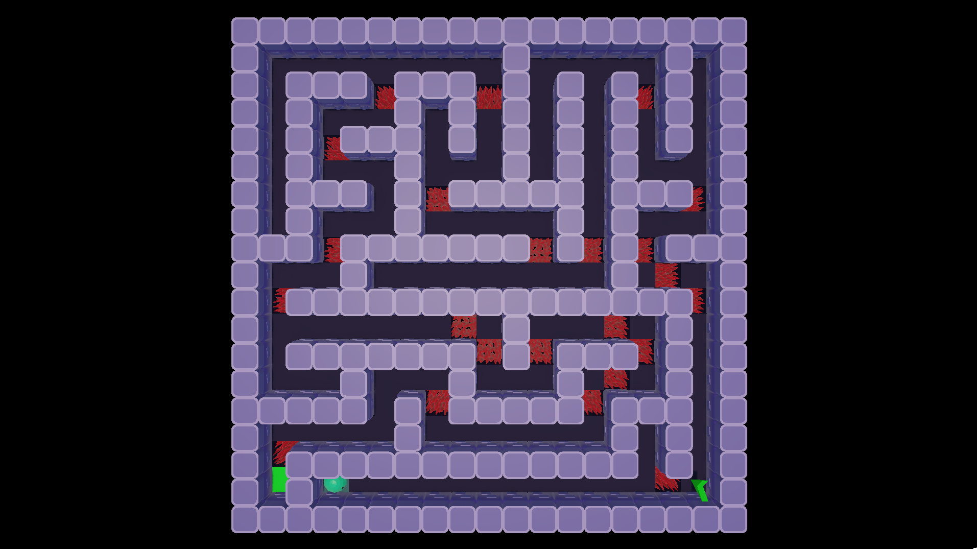 The levels are procedurally generated and get progressively more difficult to complete as you progress. The three difficulty factors are maze size, maze complexity, and frequency of spike pits.